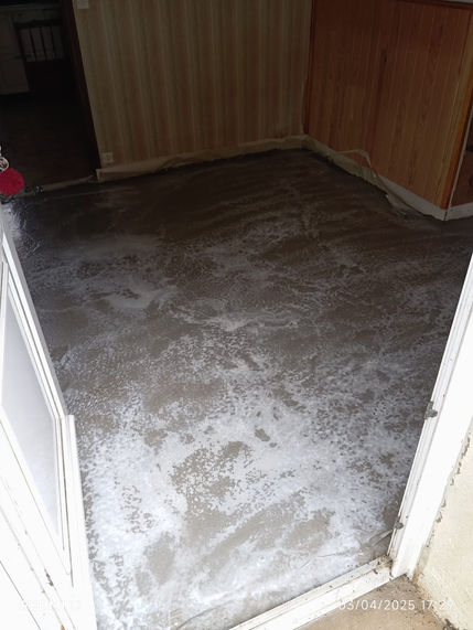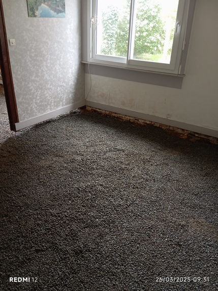 Après avoir déposé l’ancien revêtement, j’ai réalisé une dalle neuve avec ré-isolation, afin de garantir une base saine et durable.